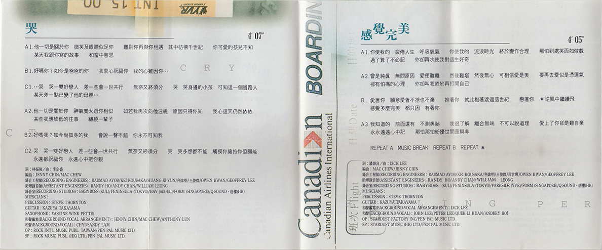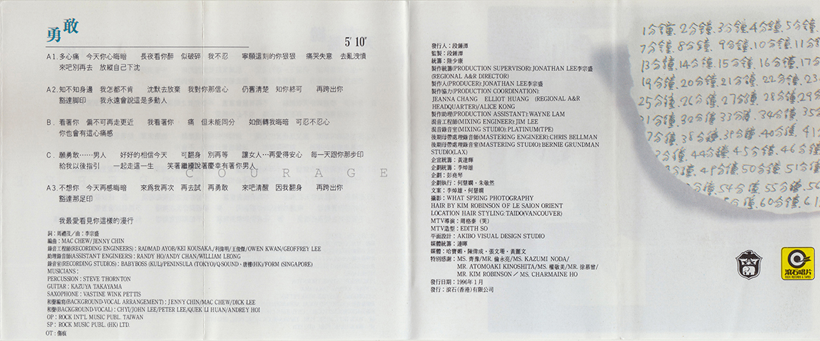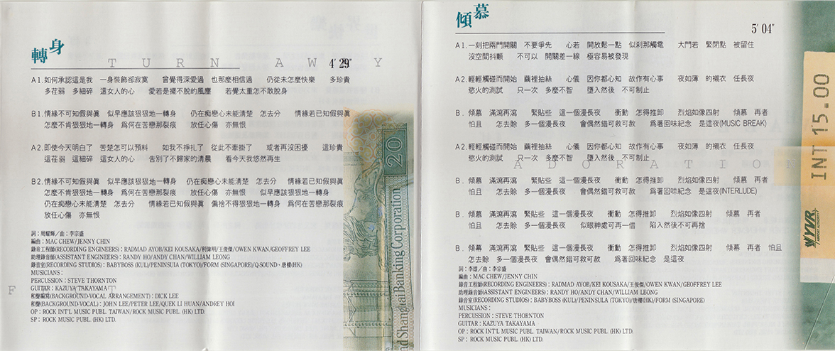 / 詞 潘源良 / 曲 Dick Lee / 編曲 Mac Chew, Jenny Chin